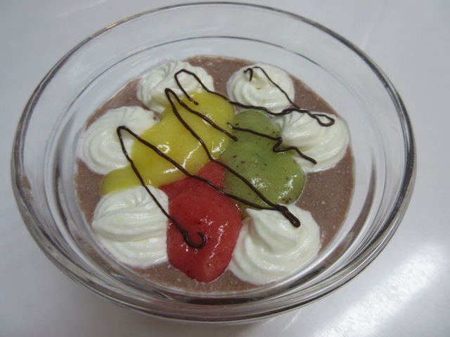 今年は雨が続いて、気分もすっきりしませんがお食事だけでも楽しく頂けたらと思い、デザートにはあじさいを模ったゼリーをご用意させていただきました。下の層にはミルクゼリーを、上の層にはぶどうゼリーとダブルベリーゼリーの2色をサイコロに切ったものを透明のゼリーをかけて固めました。遊び心満載でしたのですが、果たして気づいた方は何人いらしたのでしょうか???