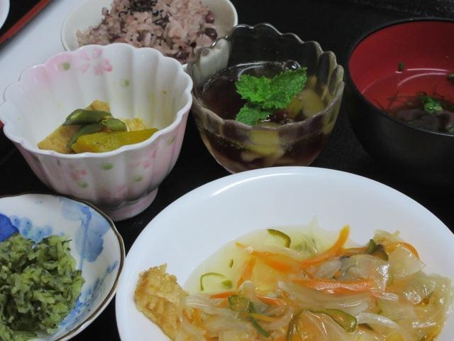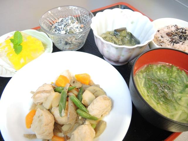 利用者様のお好きなメニュー(にがうりのこくらい)と、今年はとっても暑いので冷や汁をお出ししてみました。にがうりのこくらいは、私が八代に来て初めて知った料理だったのですが、八代の郷土料理ではないのでしょうか?ネット検索すると以外にも普通にメニューに載っているのですね(*^。^*)知りませんでした。