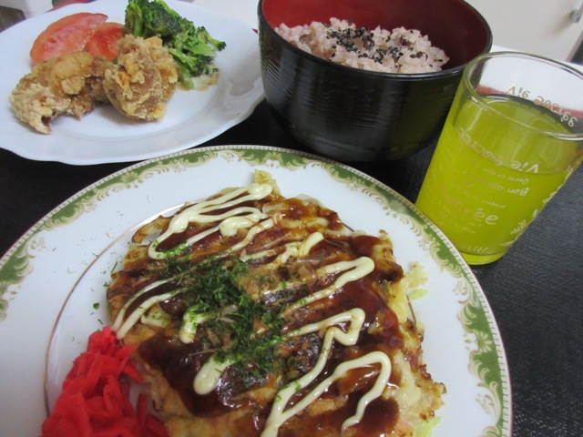 今年のお料理は、お誕生者の方の大好きなお好み焼きを作りました。