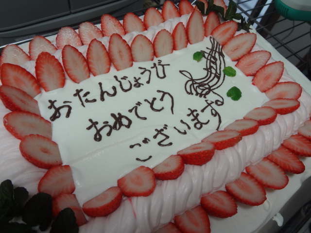 7月の誕生者の方の中にはお豆が大好きでたまらないという方がいらしたので、今回は食事にも豆、ケーキにも豆をご提供させていただきました。ケーキに甘納豆???と思う方もいらっしゃるかもしれませんが、これが結構イケるんです(*^。^*)お試しあれ・・・