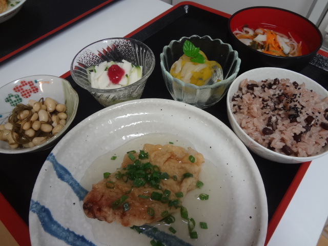 1月の誕生者の方が、お魚が苦手でお肉の咀嚼も難しい方がいらしたので、鶏の照り焼きのミンチバージョンを作り、麺類もお好きでしたので汁物は、にゅうめんにしました。ご家族様や、ケアマネ様もお招きし、にぎやかで楽しい会になりました。たくさんのご参加をいただきありがとうございました。